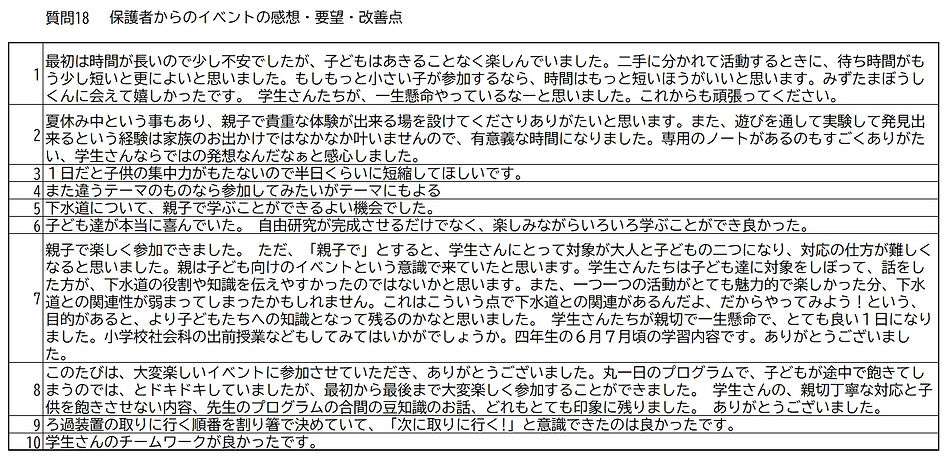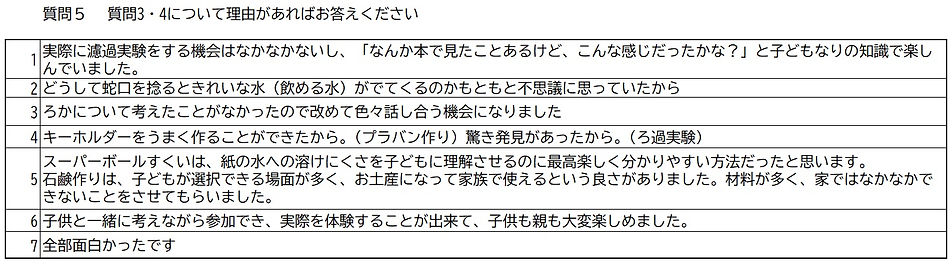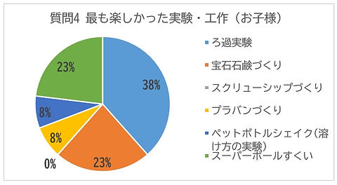 Gゼミのゼミ生が行った夏休みの自由研究教室。夏休みが終わった後、参加してくれた小学生とその保護者にアンケートを取った。その集計結果で私たちゼミ生は大騒ぎ。なんと、アンケート結果が好評すぎるほど好評で、嬉しいやら誇らしいやら。この結果にモチベーションダダ上がりで、高校生にもこの感覚をという気持ちで高校生向け探求授業提案を模索するように…